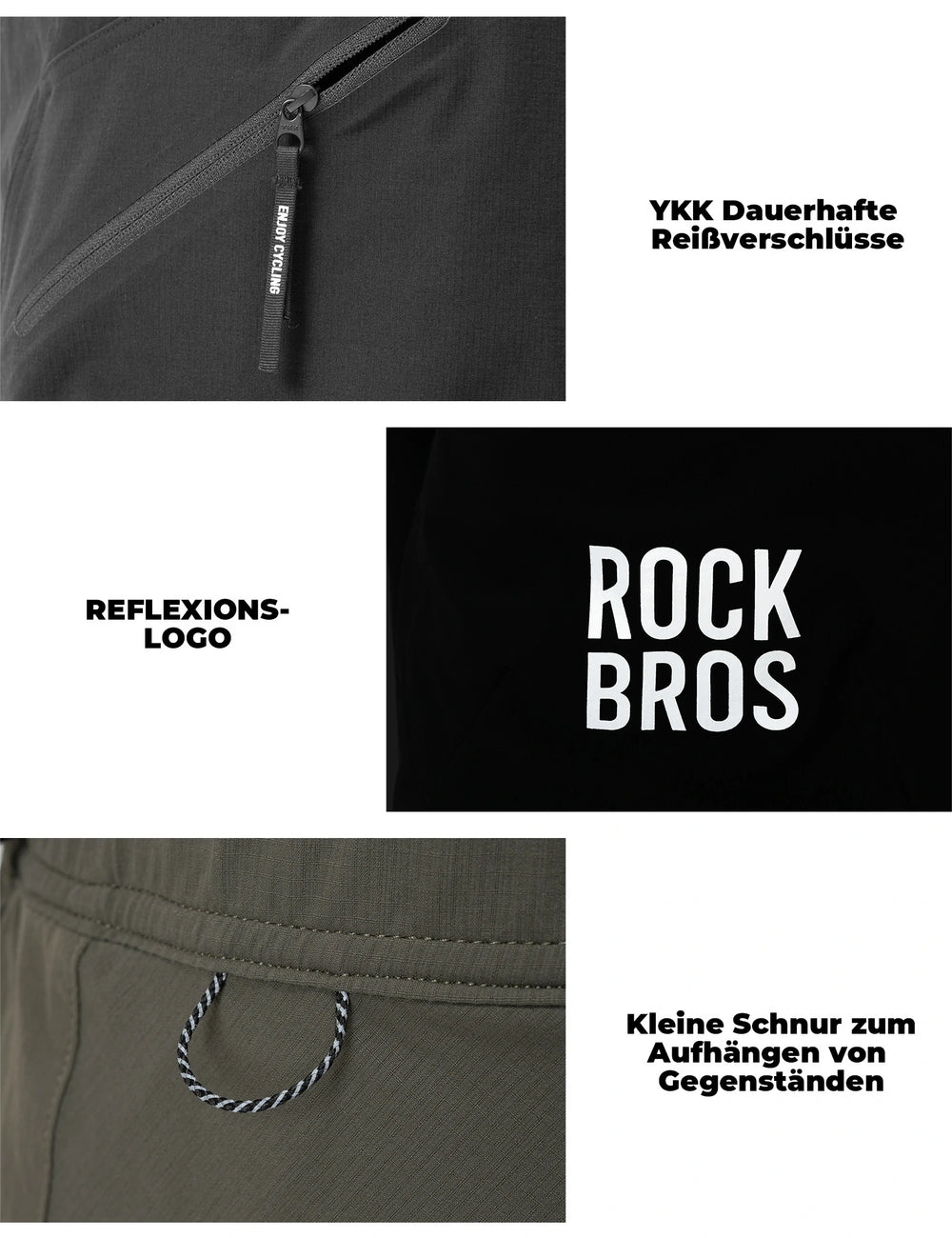 Ausgestattet mit zwei seitlichen Einschubtaschen und zwei Reißverschluss-Sicherheitstaschen an den Oberschenkeln. Bietet sicheren und schnellen Zugriff auf Smartphone, Schlüssel, Geldbeutel oder Energieriegel – ideal für unterwegs.