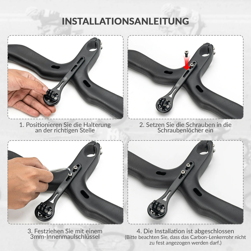 Verlängert den Fahrradcomputer nach vorne und reduziert die Nackenbelastung. Zentrale Platzierung verbessert die Sicht und erhält gleichzeitig die aerodynamische Lenkerform