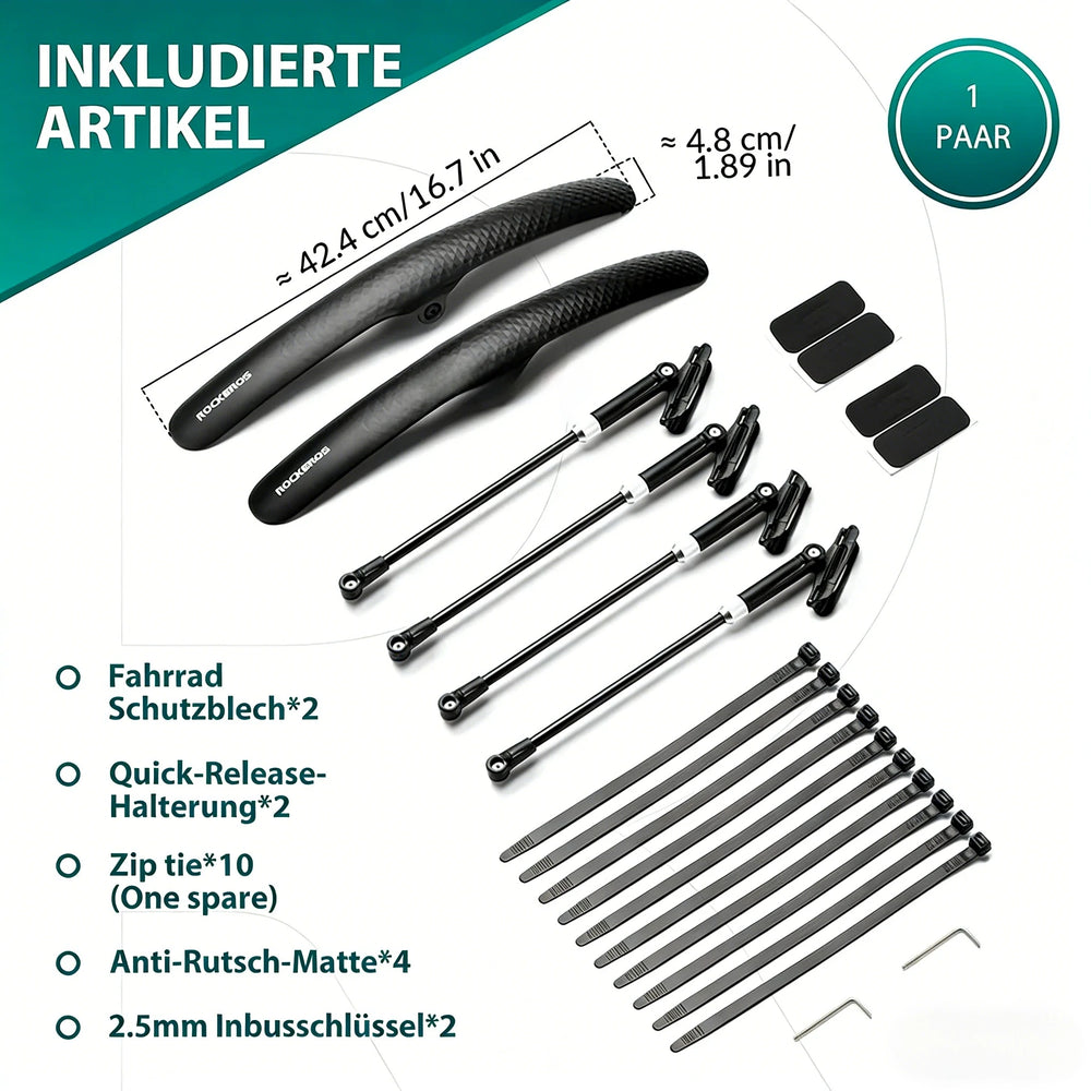 - Einfache Installation mit Schnellverschluss: Das Schnellverschluss-Design ermöglicht eine schnelle Installation und Entfernung von Rennradflügeln.