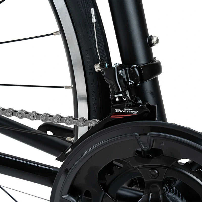 Die Geometrie wurde für eine aufrechtere Sitzposition entwickelt, um die Belastung von Rücken und Nacken zu reduzieren. Dies macht das Rad zur idealen und vertrauenserweckenden Wahl für Ihr erstes Rennrad.