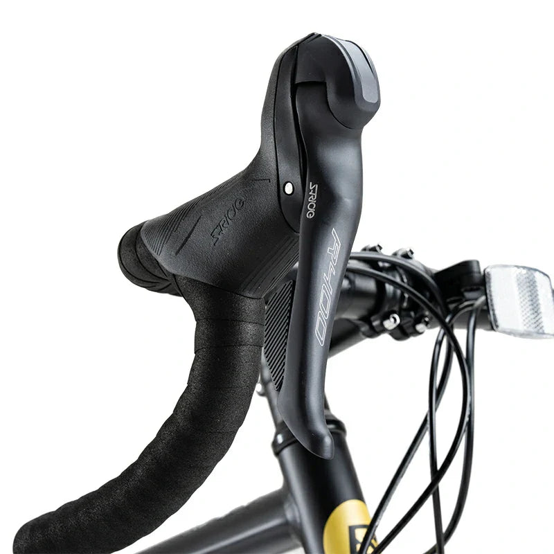 Ausgestattet mit integrierten S-ride R400 Schalt-Bremshebeln für eine nahtlose Bedienung (Bremsen und Schalten mit einer Handbewegung). In Kombination mit den zuverlässigen Shimano Umwerfern und Schaltwerken bietet das System präzise 16 Gänge für alle relevanten Übersetzungen.