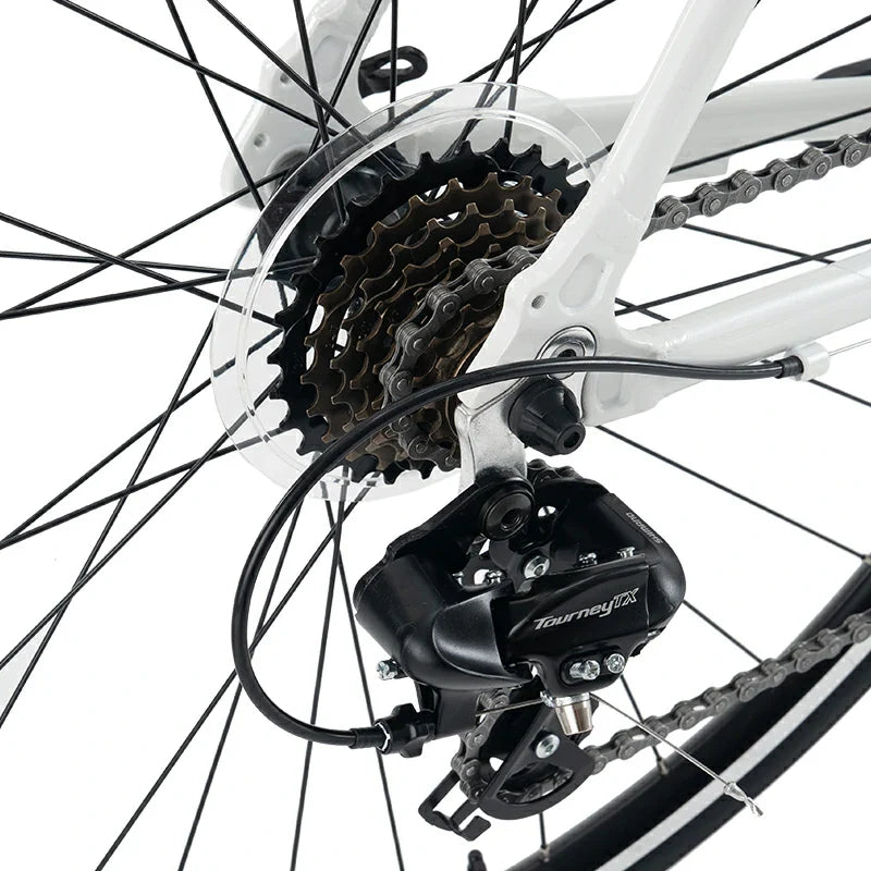 Der Aluminiumrahmen überzeugt durch Korrosionsbeständigkeit und Langlebigkeit. Er wird kombiniert mit einer Hi-Ten Stahlgabel, die Straßenvibrationen effektiv absorbiert und so für ein geschmeidigeres Fahrgefühl sorgt – ideal für das tägliche Pendeln und Abenteuer am Wochenende.
