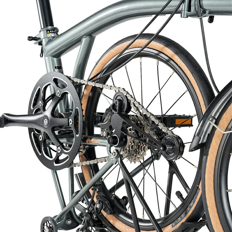 - S-RIDE 7-Gang Schaltung für Falträder: Spezielle 7-Gang-Schaltung von S-RIDE für Faltfahrräder. Das Schaltwerk ist beim Zusammenklappen geschützt und ermöglicht präzises Schalten. In Kombination mit Caliper-Bremsen bietet es zuverlässige Bremskraft bei geringem Wartungsaufwand – ideal für den Stadtverkehr