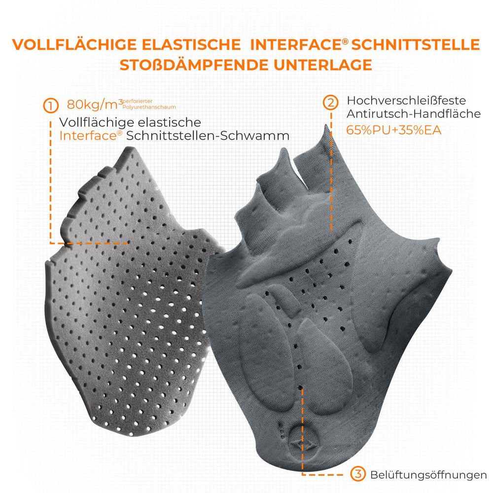 Leichtes, elastisches Mesh am Handrücken für optimale Belüftung und schnelles Trocknen – sitzt angenehm nah ohne aufzutragen.