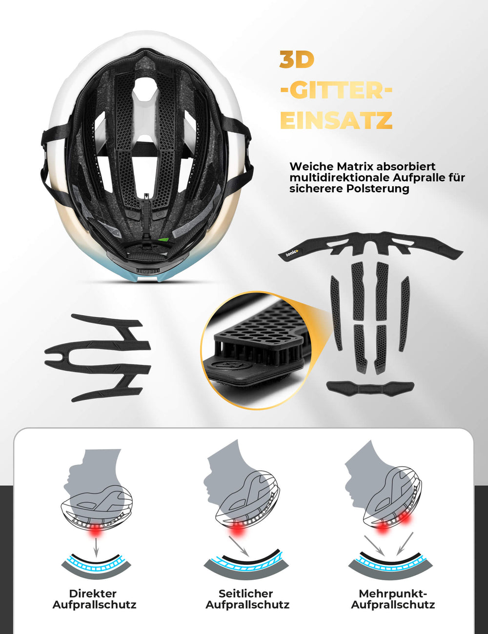 Verstärkter EPS Schaum mit integriertem bionischem Skelett verteilt Aufprallkräfte in mehrere Richtungen und sorgt so für optimalen Kopfschutz bei Fahrradunfällen