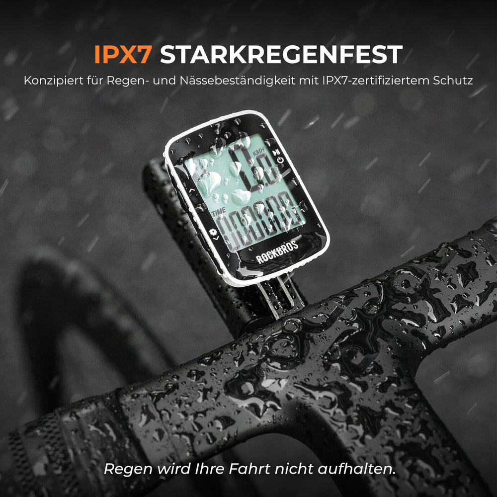 Zertifizierte Wasserdichtheit trotzt auch starkem Regen. Anpassbare Halterung für schnelle Montage an jedem Lenker mit aerodynamischem Design.