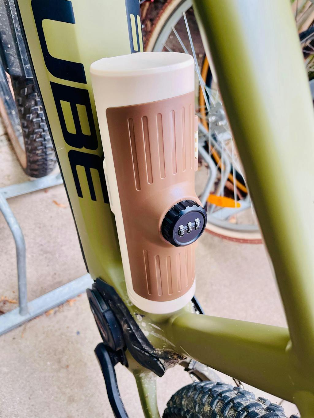 Fester Halt am Fahrradrahmen mit Kabelbindern, optional mit Stahlkabel für zusätzlichen Schutz.