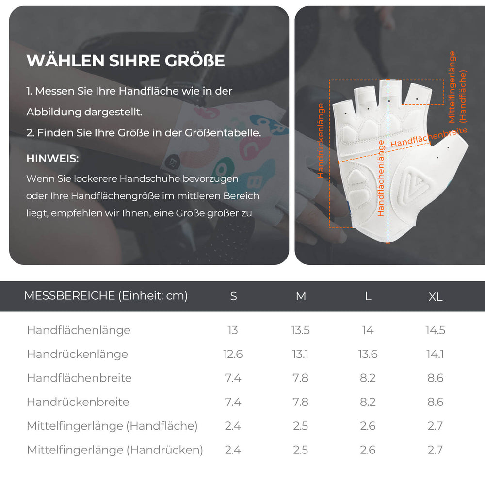 Klare Größentabelle ermöglicht perfekte Passform durch Handflächenvermessung. Profi-Tipp: Bei mittleren Handmaßen eine Größe größer wählen für lockeren Sitz.