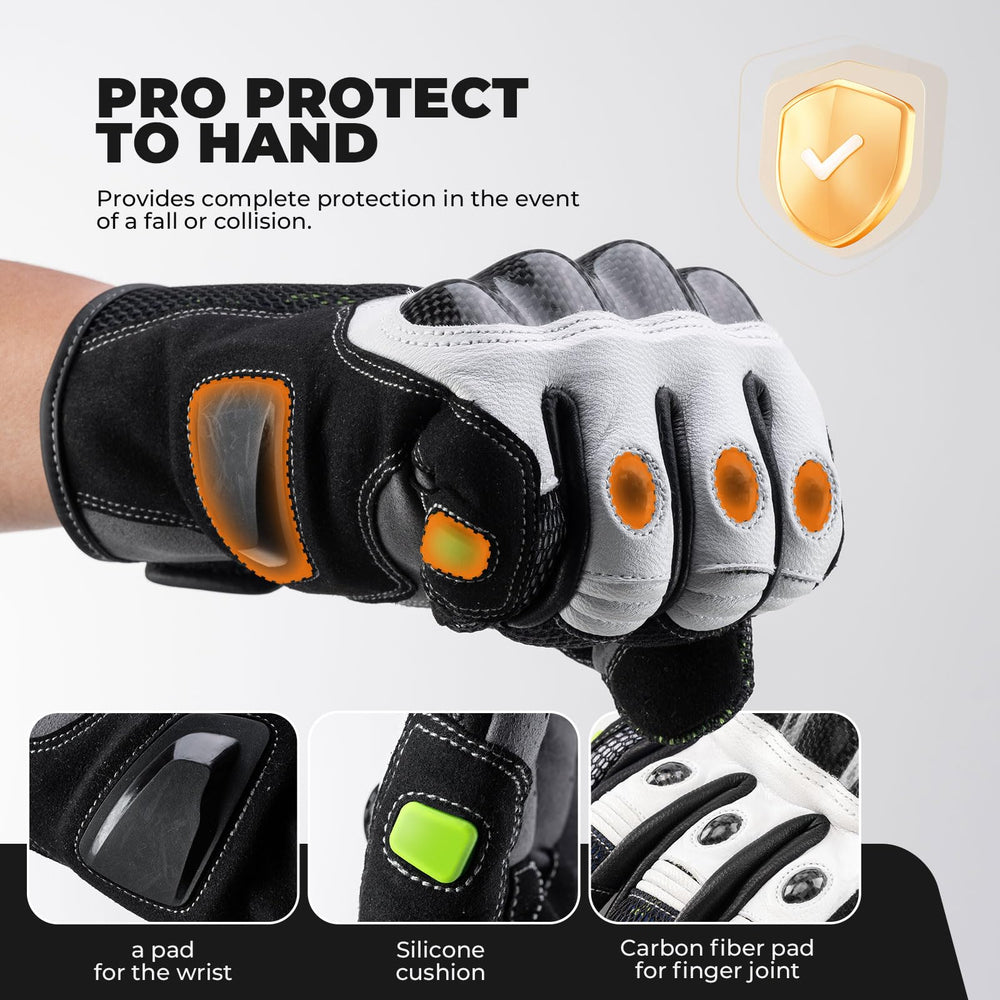 Die Fahrradhandschuhe verfügen über eine Kohlefaser-Schutzschale für das Gelenk und eine Handgelenkpolsterung, die im Falle eines Sturzes oder einer Kollision vollständigen Handschutz bietet
