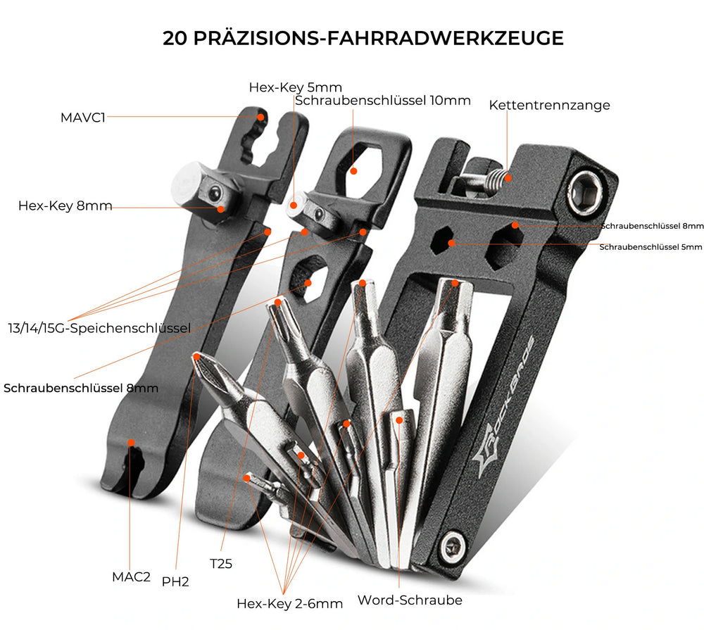 Fahrrad Multifunktionswerkzeug 20-in-1 Multitools Faltbare Reparatur Werkzeug Set aus Edelstahl