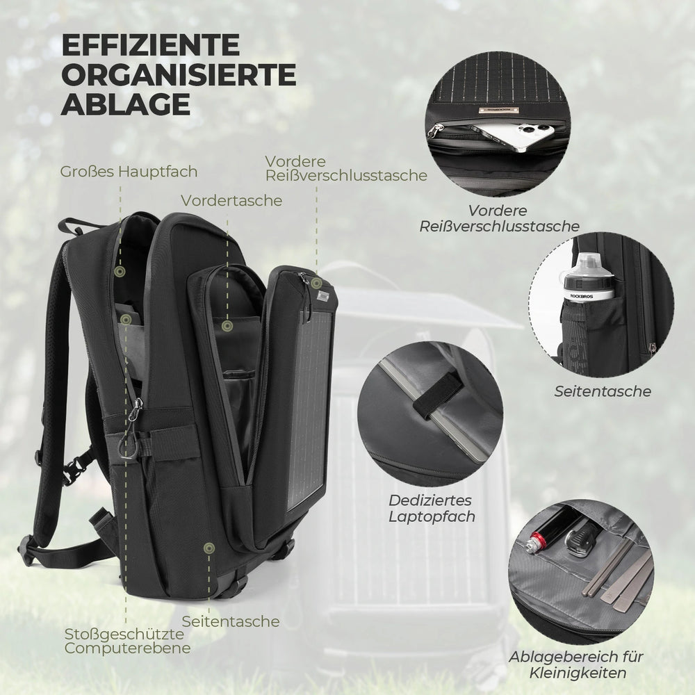 Solarrucksack Solar Rucksack 20L mit Flexiblem Abnehmbarem 10V 14W