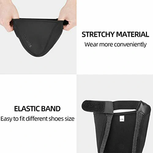 Im Inneren befindet sich rutschfester Streifen, der verhindert, dass die Schuhabdeckung während der Fahrt abfällt. Durch die dickere Kante hat der Schuhbezug eine längere Lebensdauer