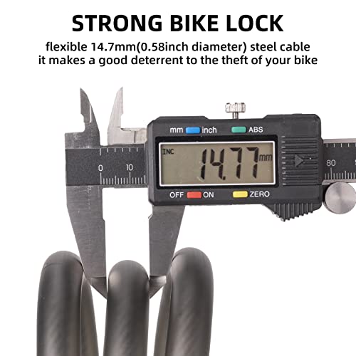 Das Innere des Fahrradschlosses besteht aus fünf Stahlseilen. Die Dicke von 14,27 mm macht das Kabelschloss nicht leicht zu brechen oder zu schneiden. Die äußere schnittfeste wasserdichte PVC-Schale kann Ihres Fahrrad besser schützen.