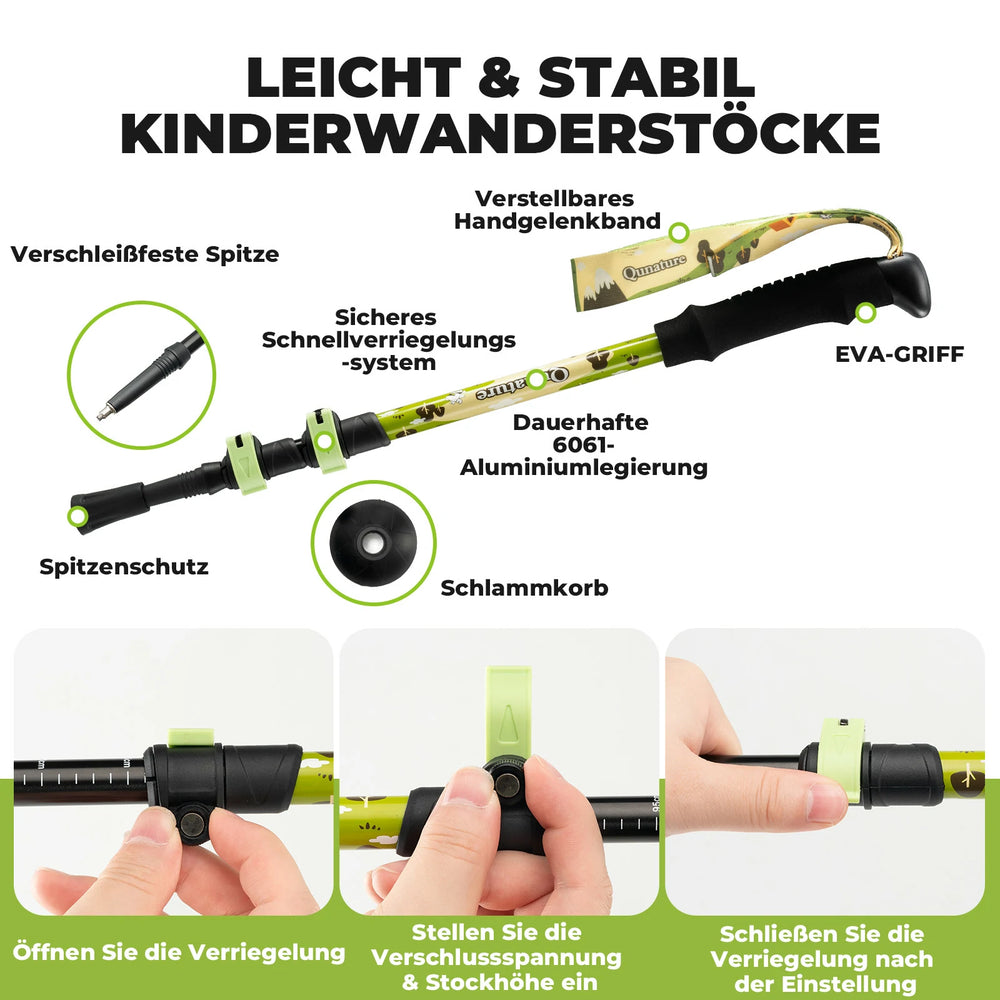 Die Länge lässt sich mühelos von 51 bis 101 cm anpassen und begleitet das Wachstum des Kindes. Bietet zuverlässige Unterstützung und Balance bei Wanderungen und Outdoor Aktivitäten