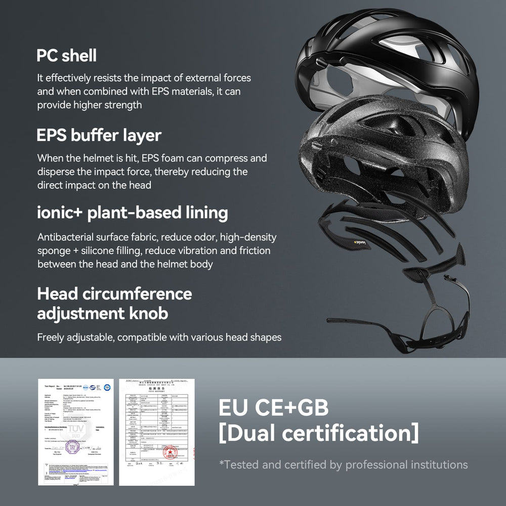 Offizielle CE- und GB-Zertifizierung durch unabhängige Prüfinstitute. PC-Außenschale + EPS-Dämpfungsschicht absorbieren Aufprallenergie für maximalen Kopfschutz bei Unfällen.