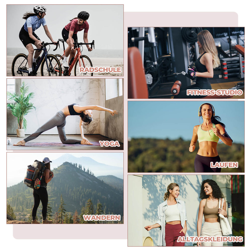 Fester einteiliger Schaumstoff-BH-Einsatz bewegt sich frei und bietet optimale Stütze ohne Einschnürungen. Ideal für sportliche Aktivitäten wie Radfahren, Laufen oder Fitness – kein separates Sport-BH nötig.